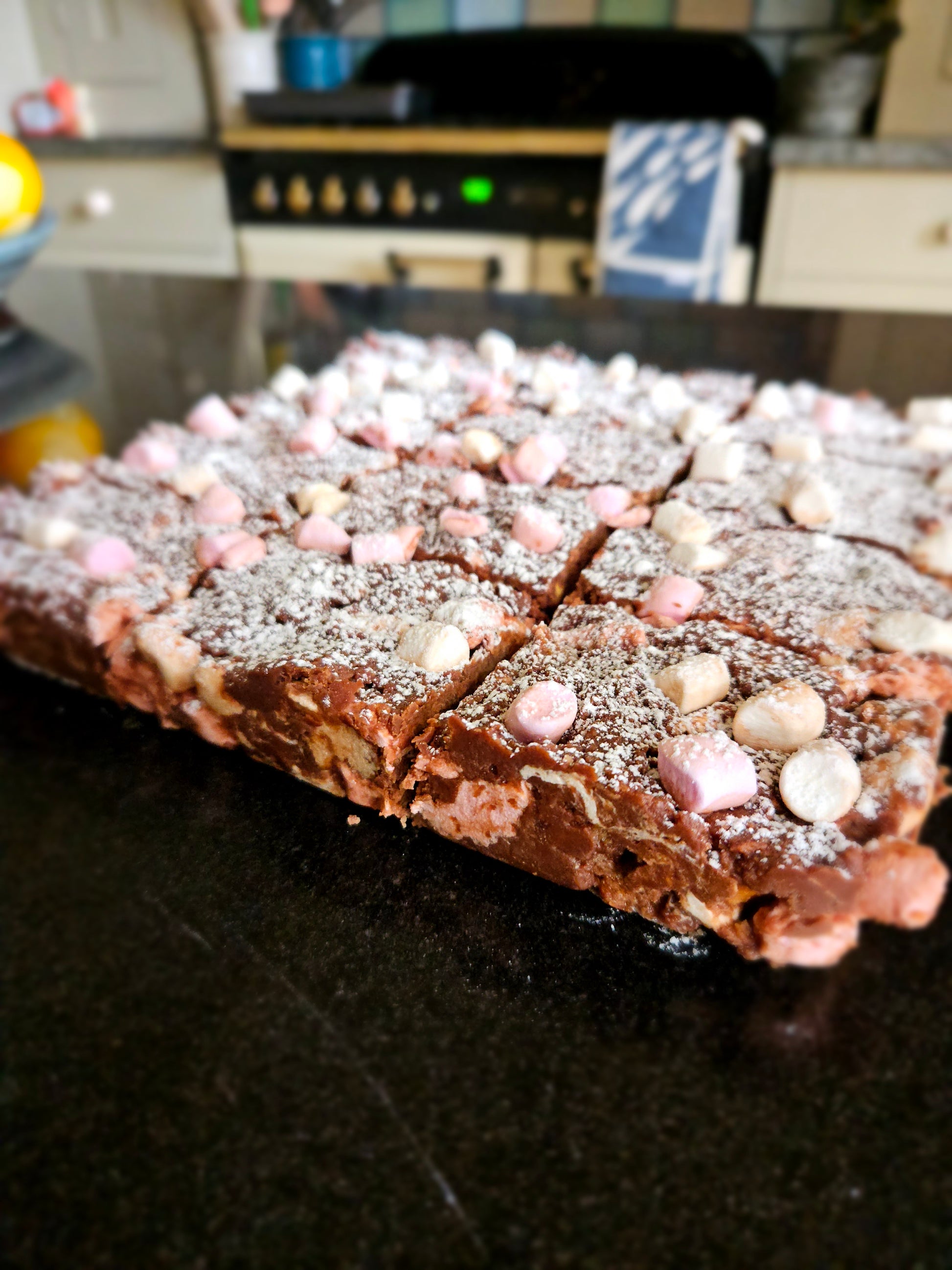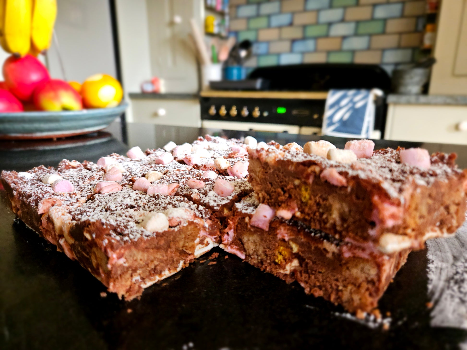 Gluten free biscuit pieces, marshmallows and honeycomb all combined in a fudgy, chocolatey, chewy slab of yumminess!